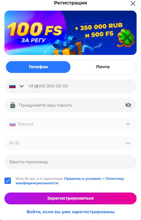 Получай до 350 000 ₽ + 500 фриспинов за регистрацию